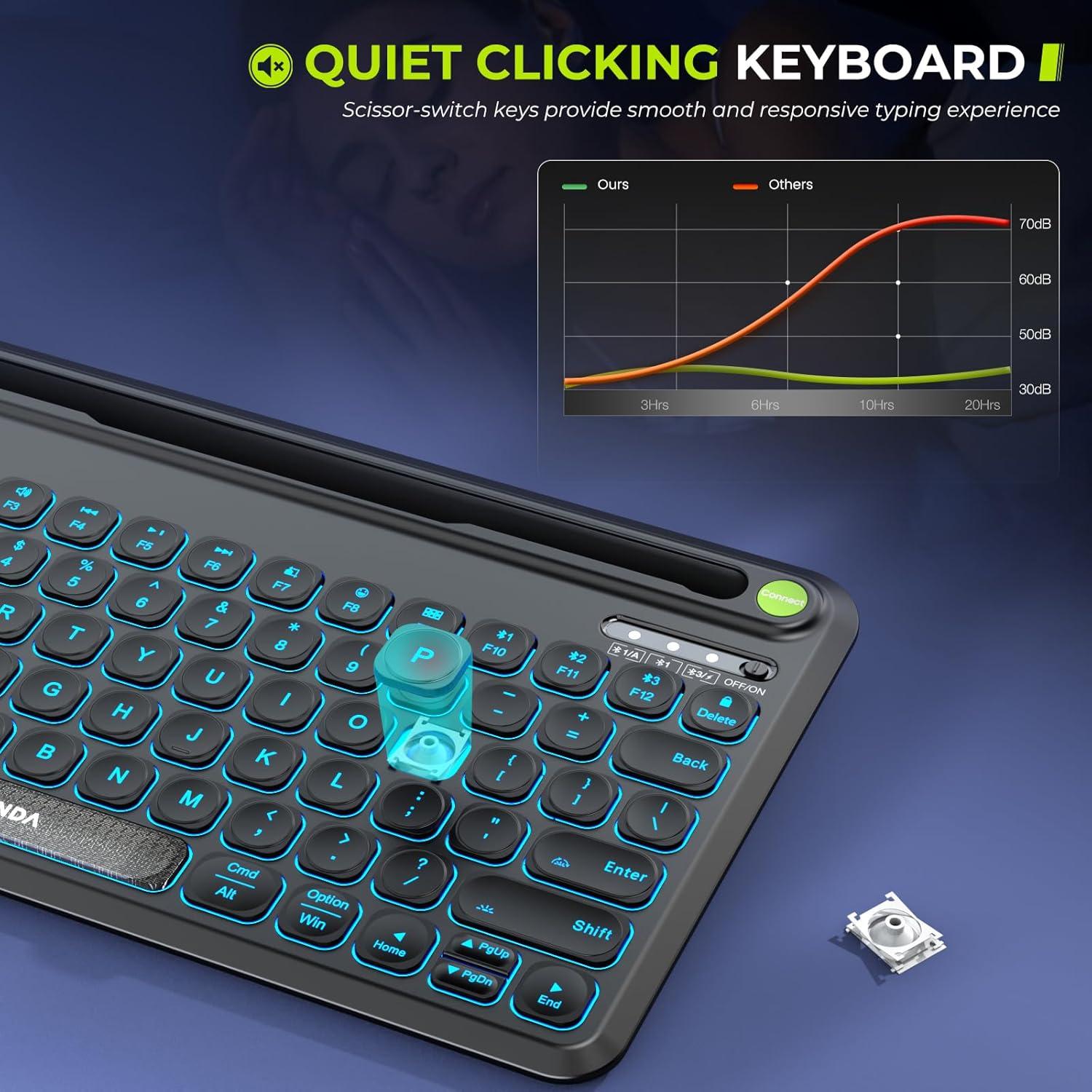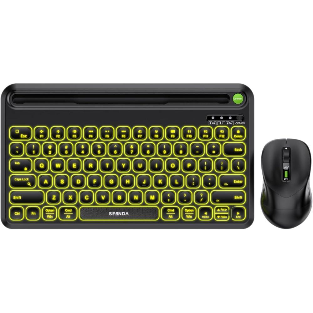 Seenda Bluetooth Keyboard and Mouse Set, Rechargeable Wireless Backlit Keyboard & Mouse with Tablet/Phone Holder for PC/Laptop/iPad/MacBook Air/Pro, Compatible with Windows/Android/iOS/Mac OS, Black