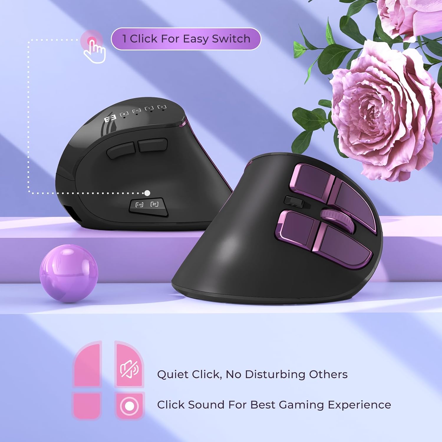 seenda Ergonomic Mouse Wireless Vertical Mouse  Rechargeable Optical Mice for MultiPurpose Bluetooth 50  Bluetooth 30  USB Connection Compatible Apple Mac Windows Computers  PinkPurpleBlack