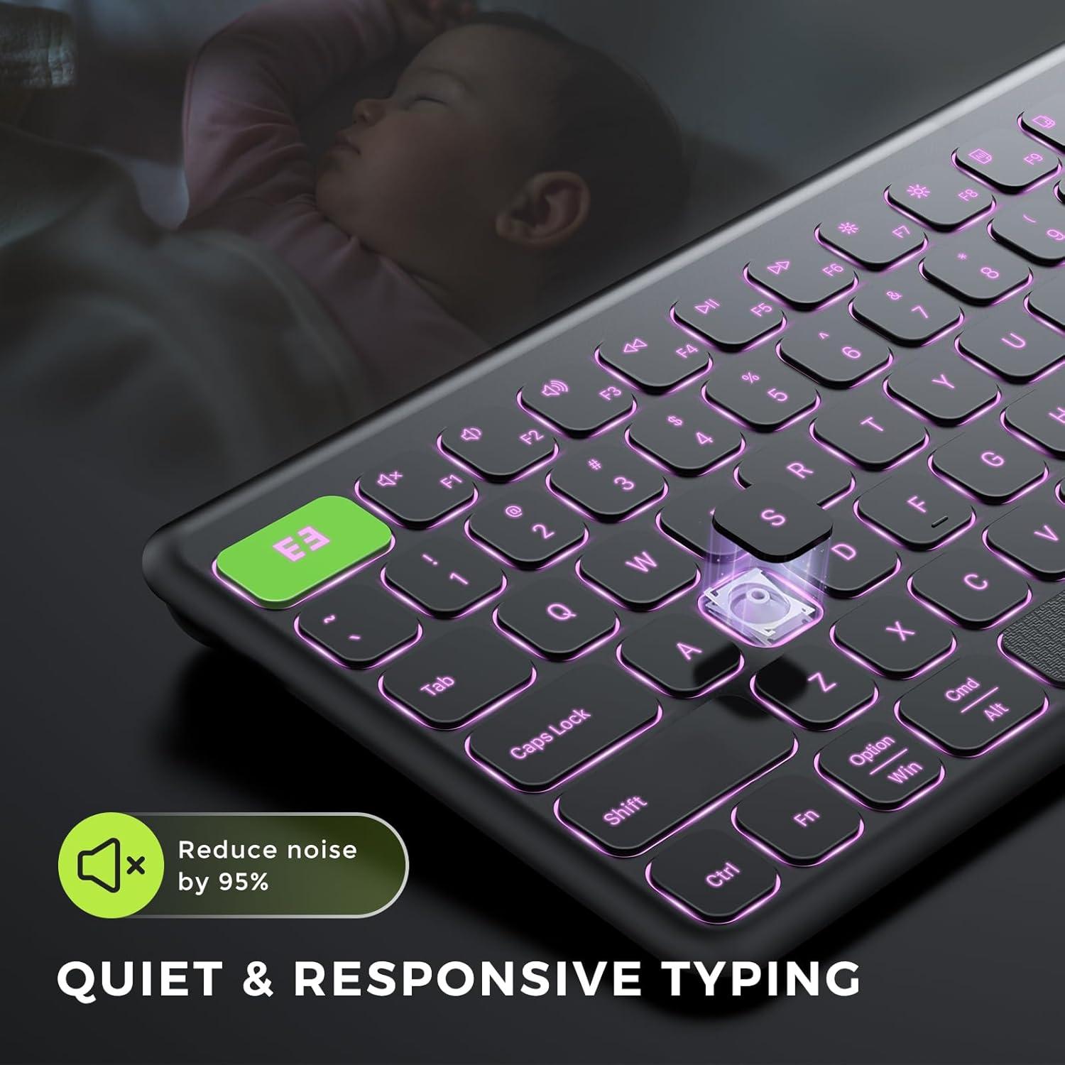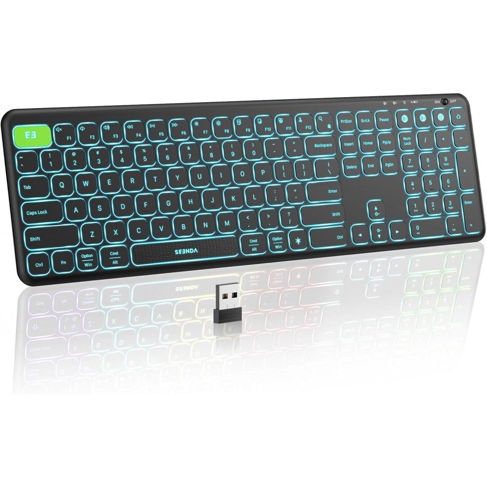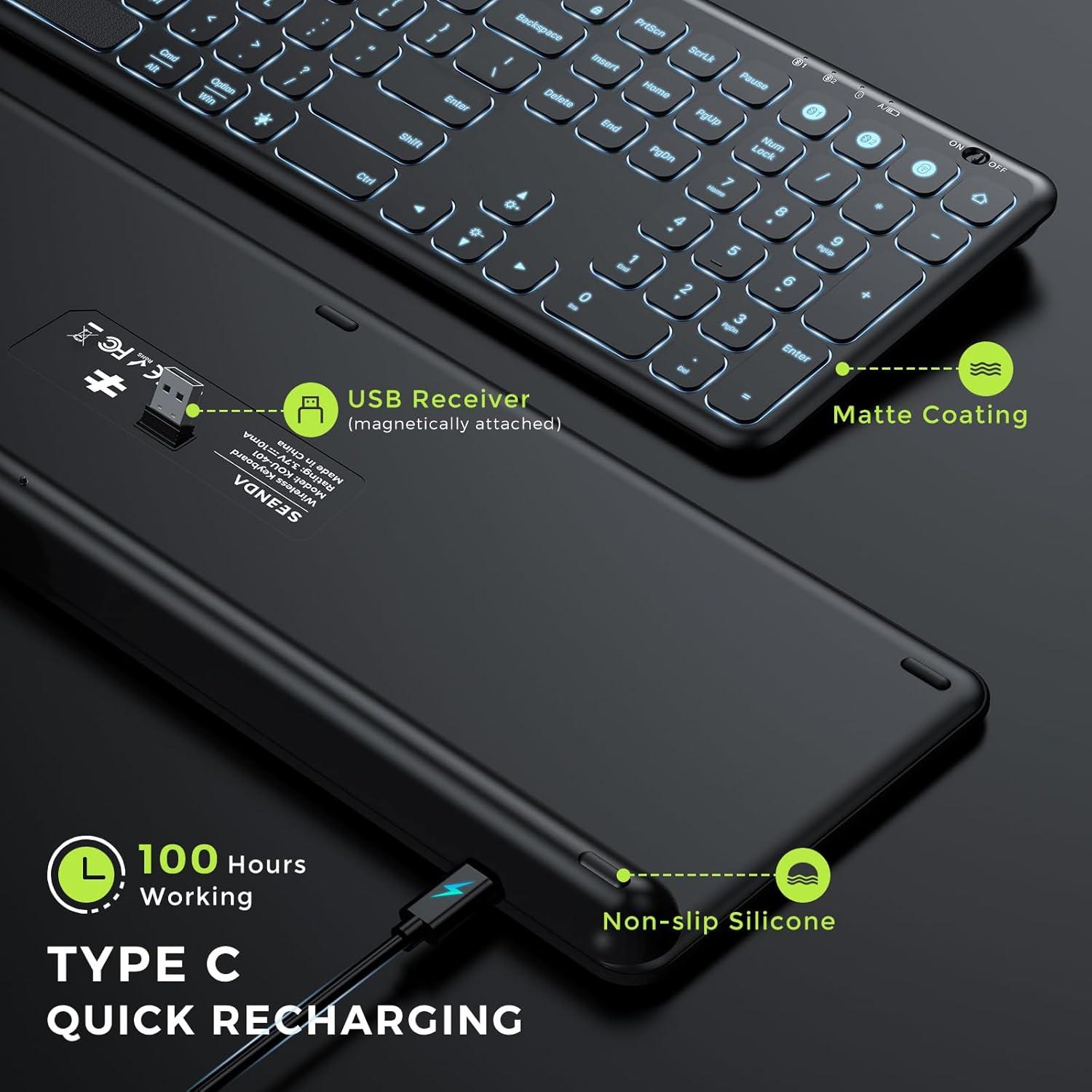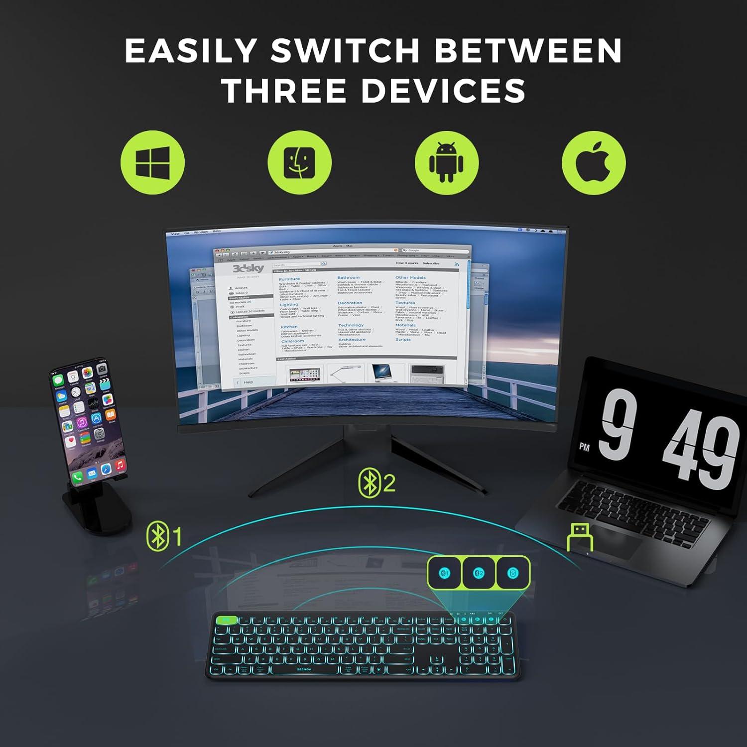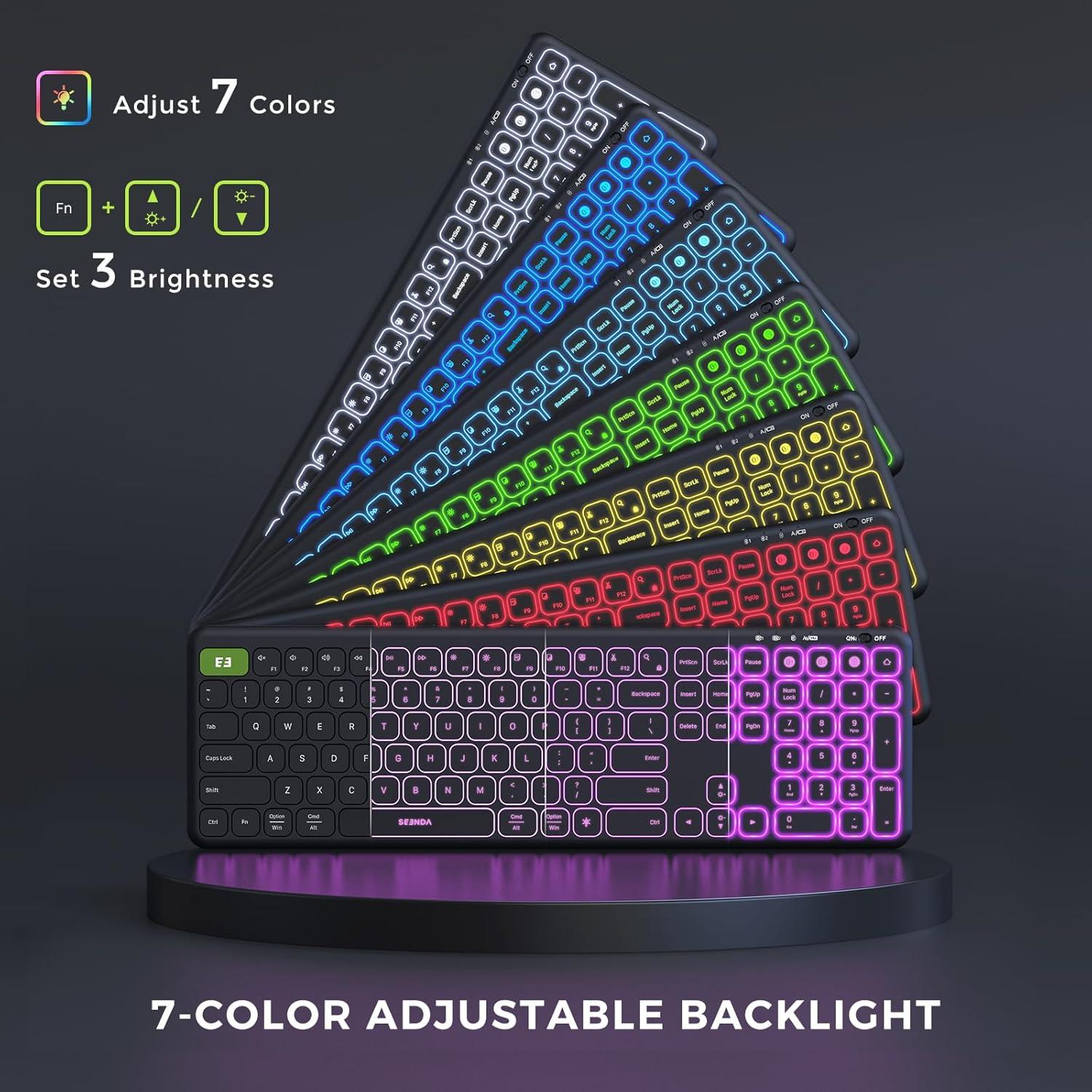 seenda Multi-Device Rechargeable Bluetooth Keyboard, USB + Dual BT, Backlit, Compatible for Windows, MacBook, iPad, Tablet - Black