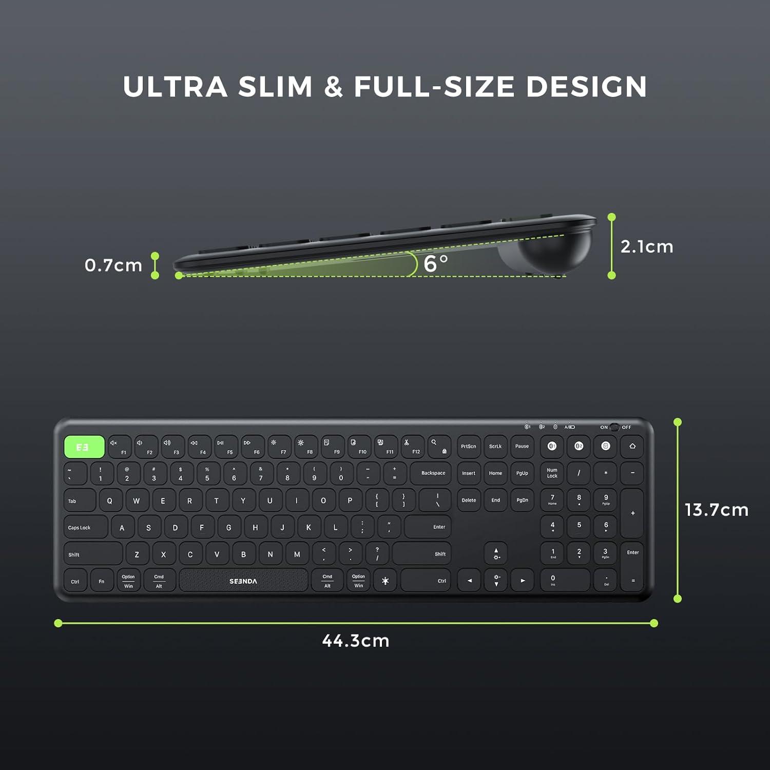 seenda Multi-Device Rechargeable Bluetooth Keyboard, USB + Dual BT, Backlit, Compatible for Windows, MacBook, iPad, Tablet – Black