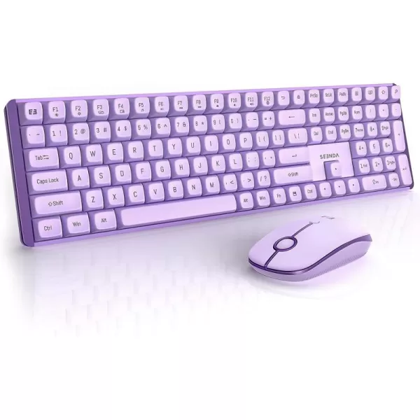 Seenda Wireless Keyboard and Mouse Combo, Mechanical Wireless Performance Keyboard, Linear Quiet RED Switches, 2.4 GHz Wireless,Mouse with Full Size Keyboard for PC, Laptop, Windows, Mac (Purple)