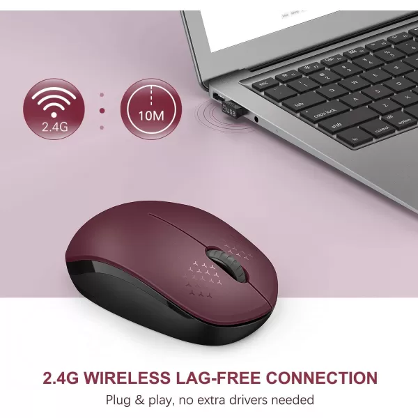 seenda Wireless Mouse 24G Noiseless Mouse with USB Receiver Portable Computer Mice for PC Tablet Laptop Notebook with Windows System  PinkRed